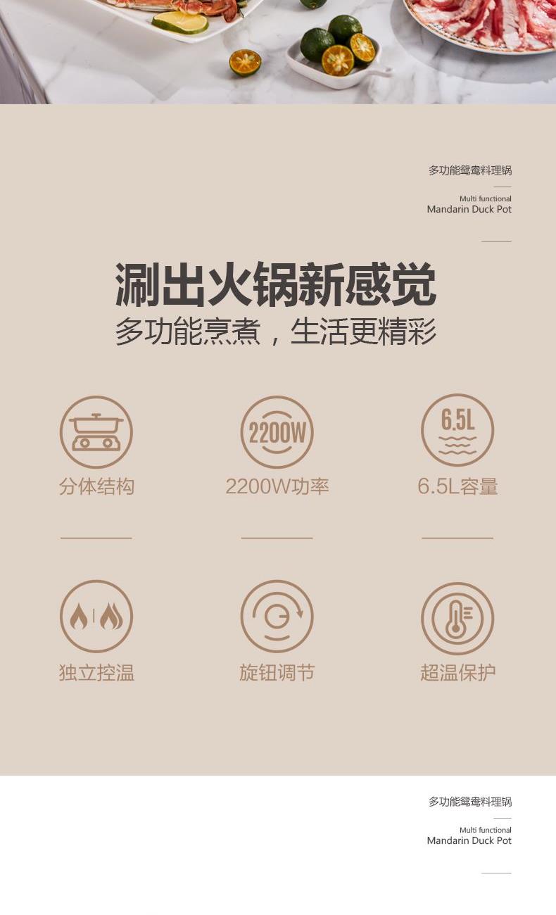 4、總容量6.5L鴛鴦火鍋膽,單鍋/雙鍋自由切換,多種場合適用;