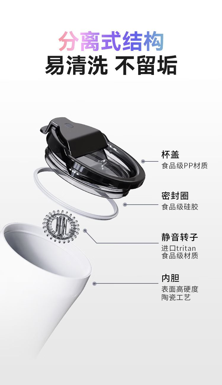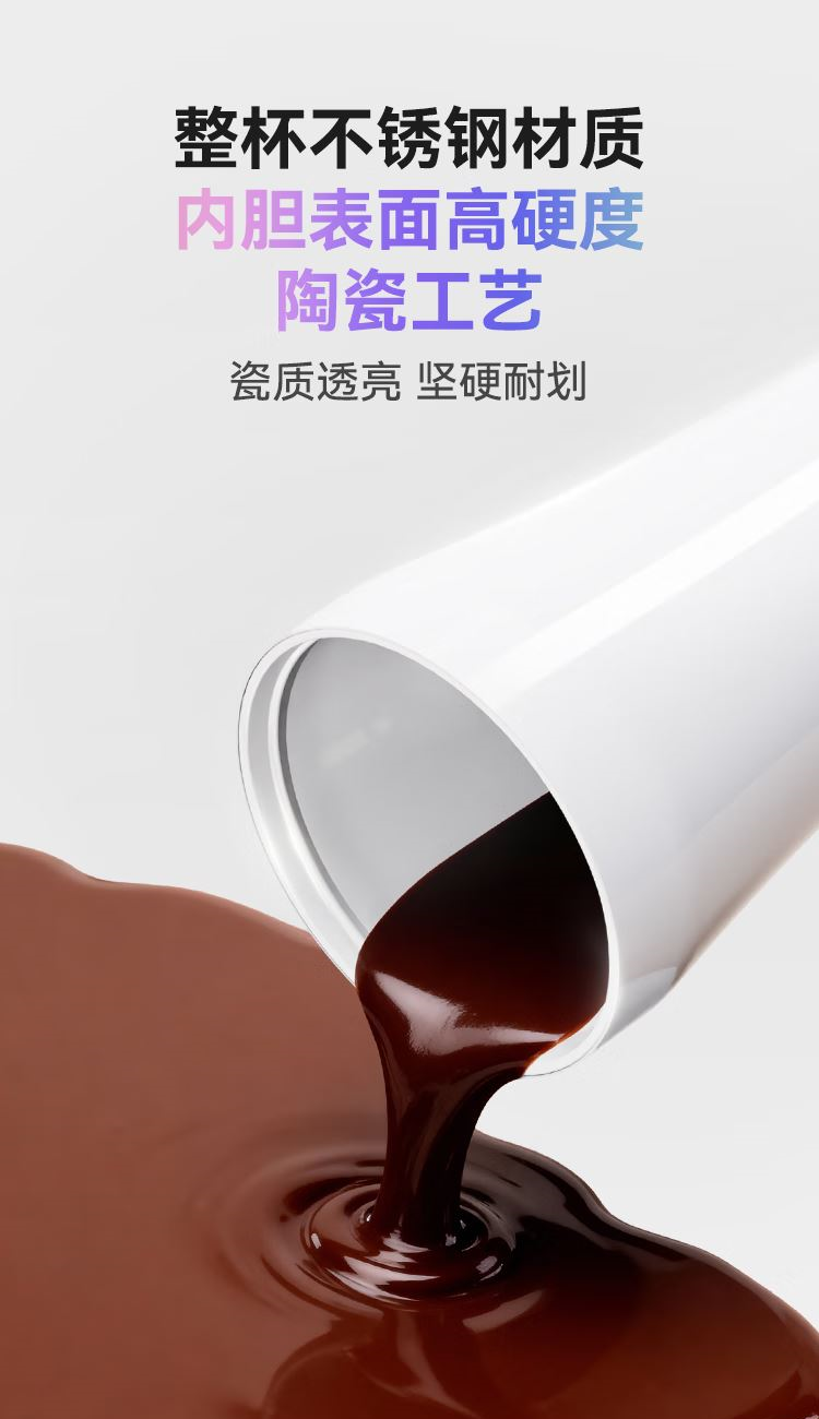 顏 色:黑色 白色 紫色 容 量:395ml 類 型:智能攪拌杯 材 質(zhì):304不銹鋼+陶瓷涂層 電池容量:500mAH 額定功率:1W 額定電壓:5V==2A