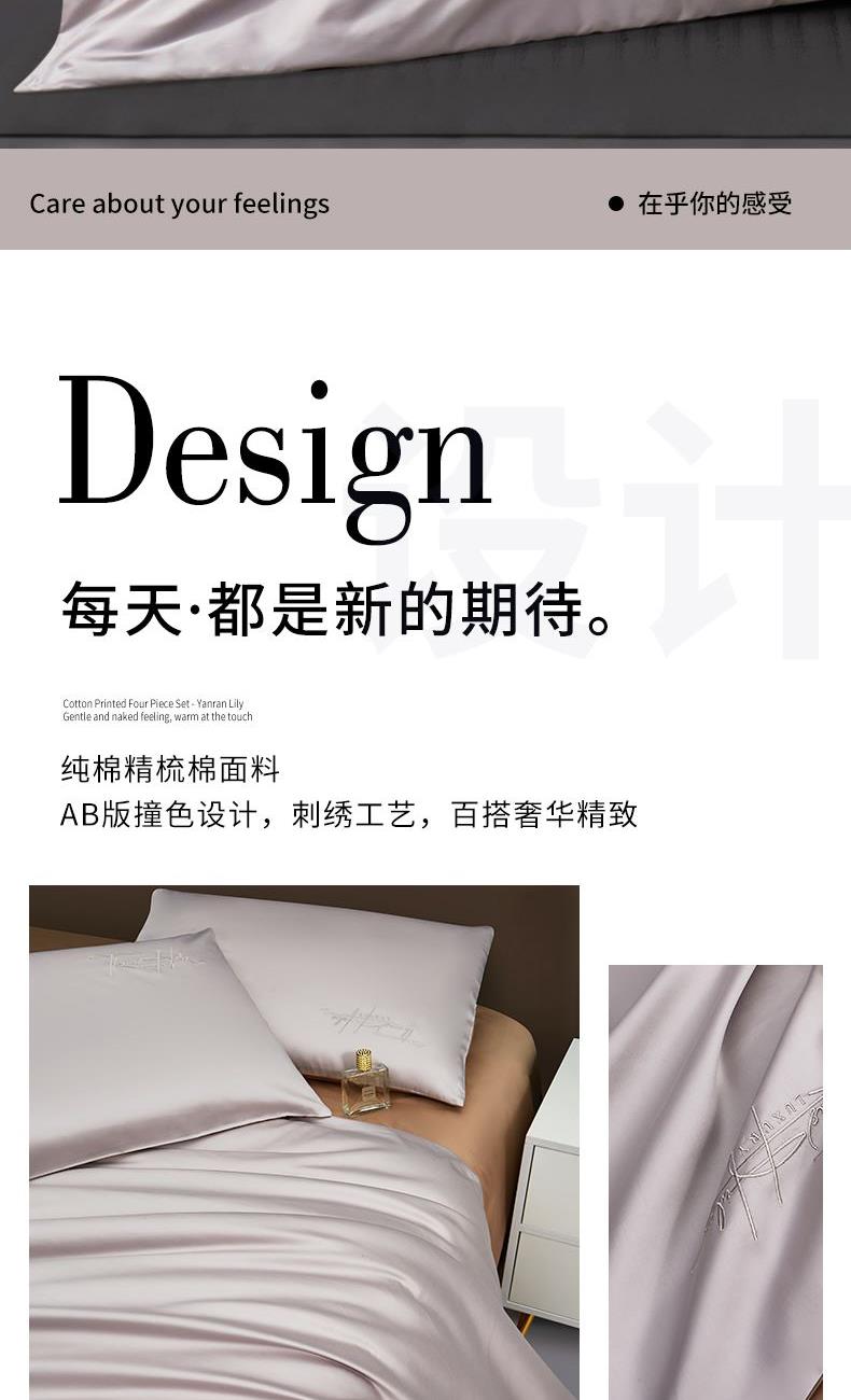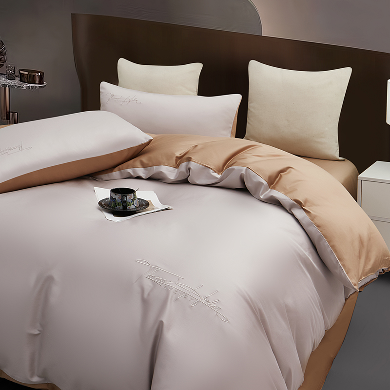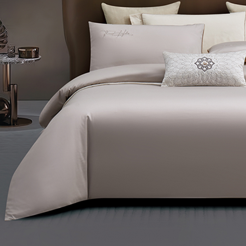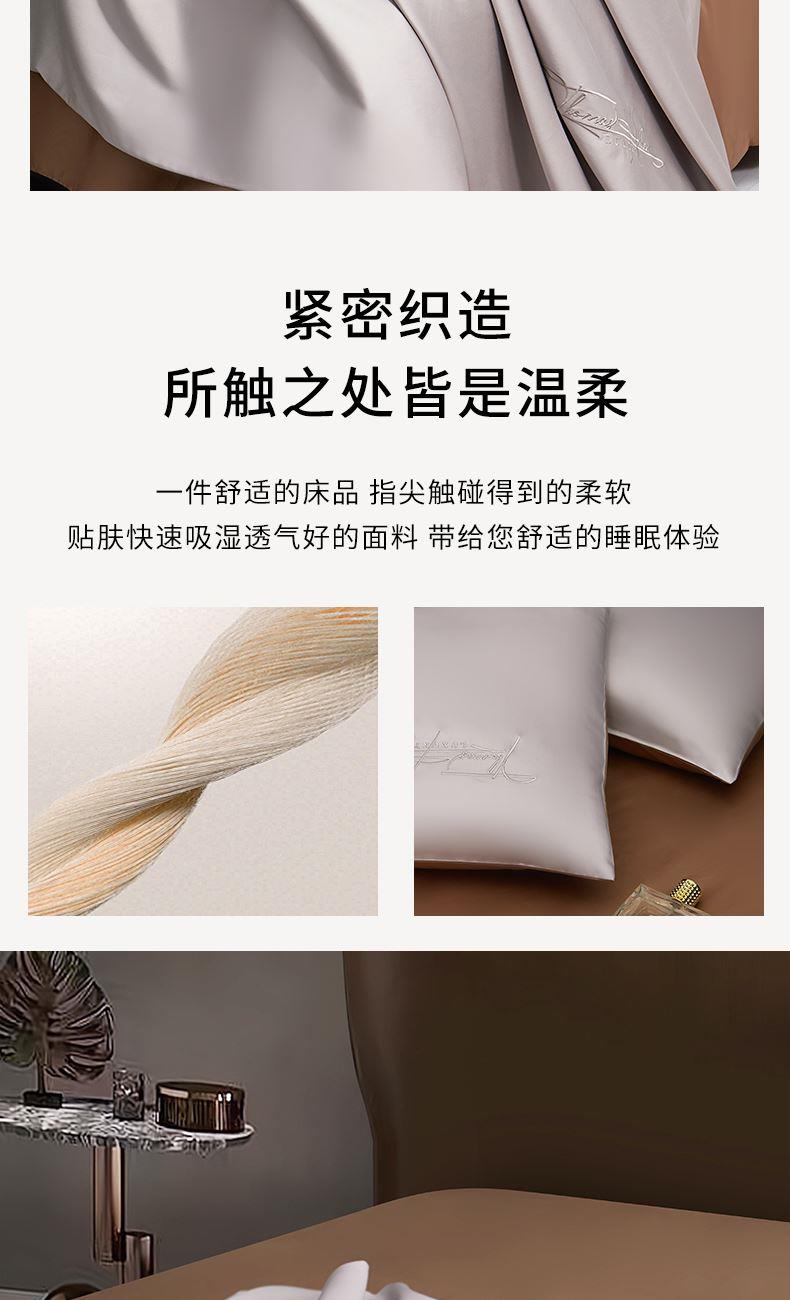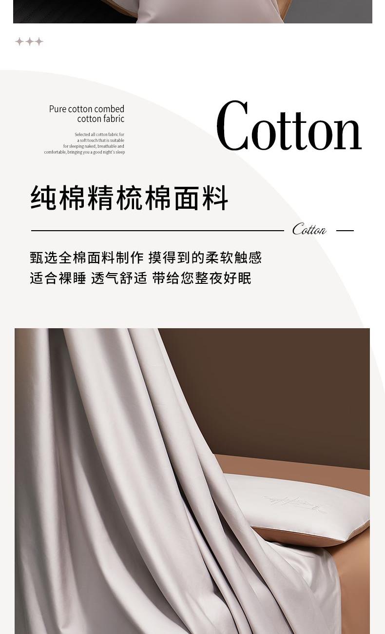 產(chǎn)品型號:S02025004 被 套:200*230cm 床 單:240*250cm 枕 套:48*74cm*2 面 料:棉 裝 箱 數(shù):7 純棉精梳棉面料,G-SOFT印染工藝,面料光澤度好、柔軟、順滑; AB版撞色設(shè)計,淺灰配深卡其色,刺繡工藝,百搭奢華精致; 天地蓋禮盒包裝,自用送禮兩相宜。