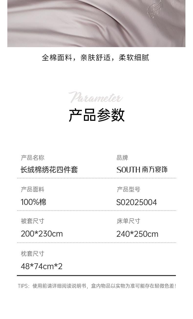 南方寢飾長絨棉繡花四件套S02025004 南方寢飾長絨棉繡花四件套S02025004