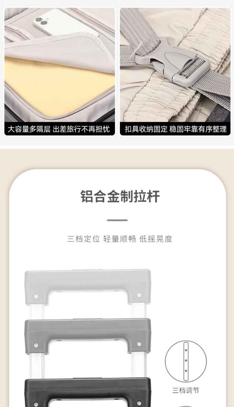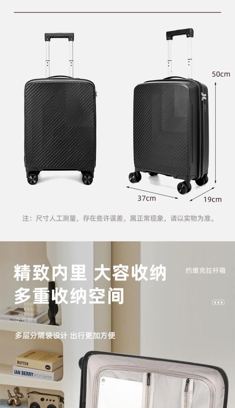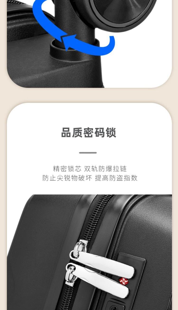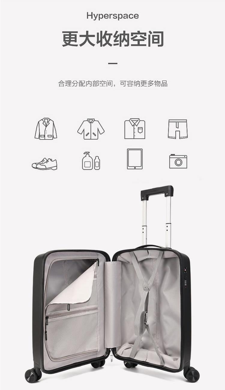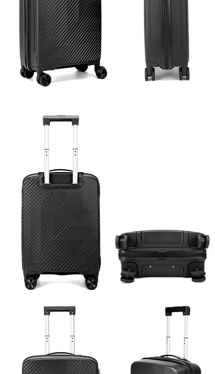 產(chǎn)品賣點(diǎn):PP材質(zhì),結(jié)晶度高,拉桿箱表面更加強(qiáng)硬,可以有效的防止磕碰造成劃痕,而且耐沖擊和防水性好;