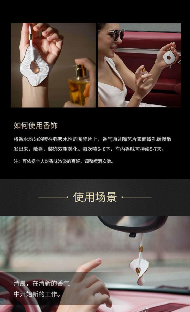 使用方法:將香水均勻的噴灑在陶瓷香飾有紋路的那一面,香飾會(huì)自動(dòng)吸收香水,并散發(fā)香味。30ml香水,可連續(xù)使用4-6個(gè)月