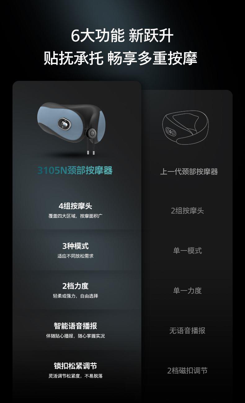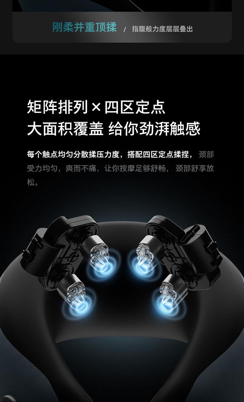 1、四組3D按摩頭,八字型按摩陣列覆蓋頸部