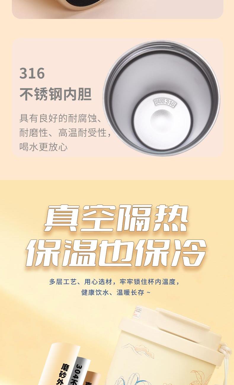 1.覓芳境--雙飲咖啡杯 容量:500ml 內(nèi)膽:316 外殼:304 杯蓋:食品級PP 吸管:食品級硅膠 吸嘴:食品級PP 密封圈:食品級硅膠 2.自潔轉(zhuǎn)動簽字筆 規(guī)格:0.5mm 3.A5平裝筆記本 規(guī)格:80張100克太陽紙 (64張點(diǎn)格紋,16張空白紙張) 禮盒尺寸:340*255*100(MM) 手提袋尺寸:350*265*110(MM)