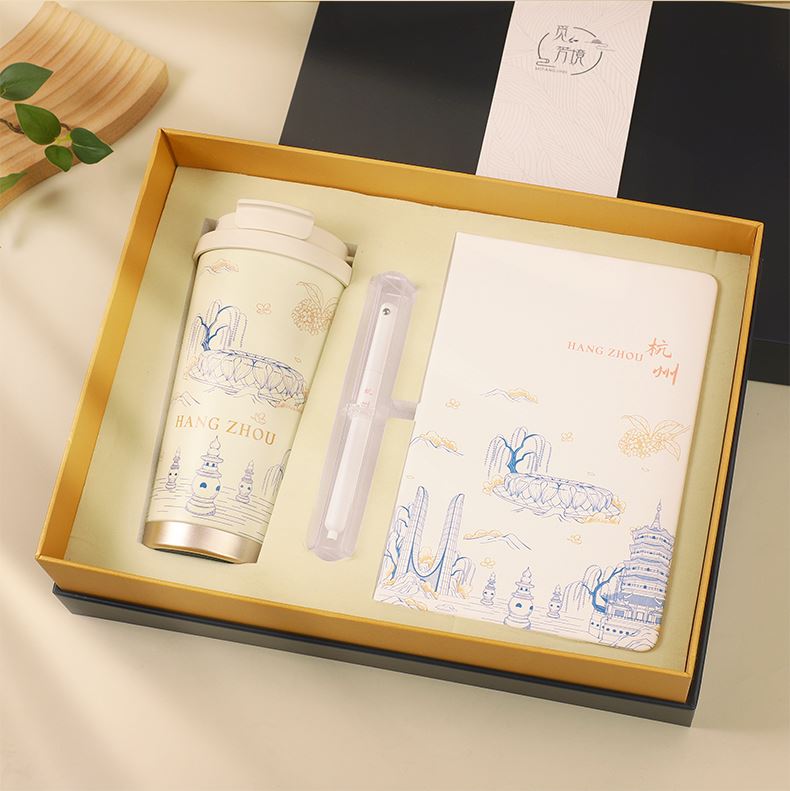 覓芳境杭州-杭地風(fēng)儀?錢塘印記(咖啡杯+簽字筆+A5筆記本) 禮品已成功加入PPT!