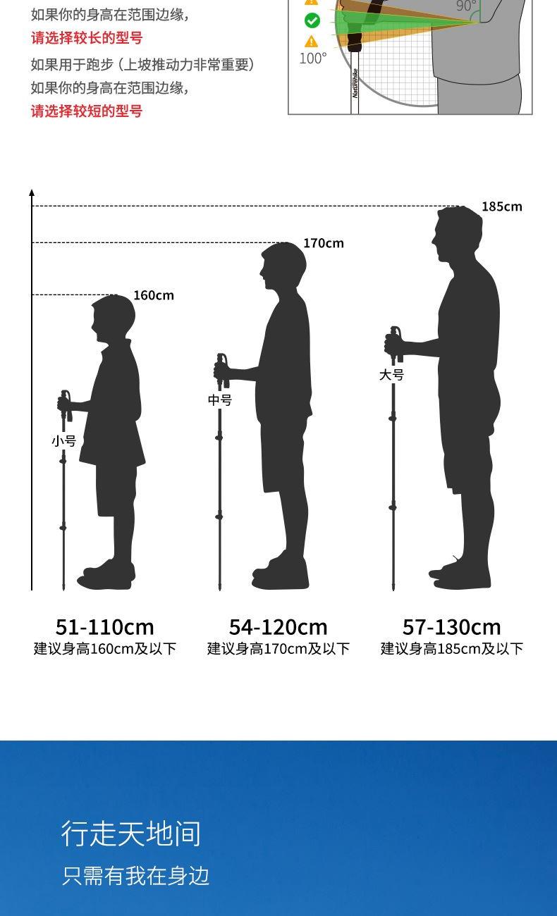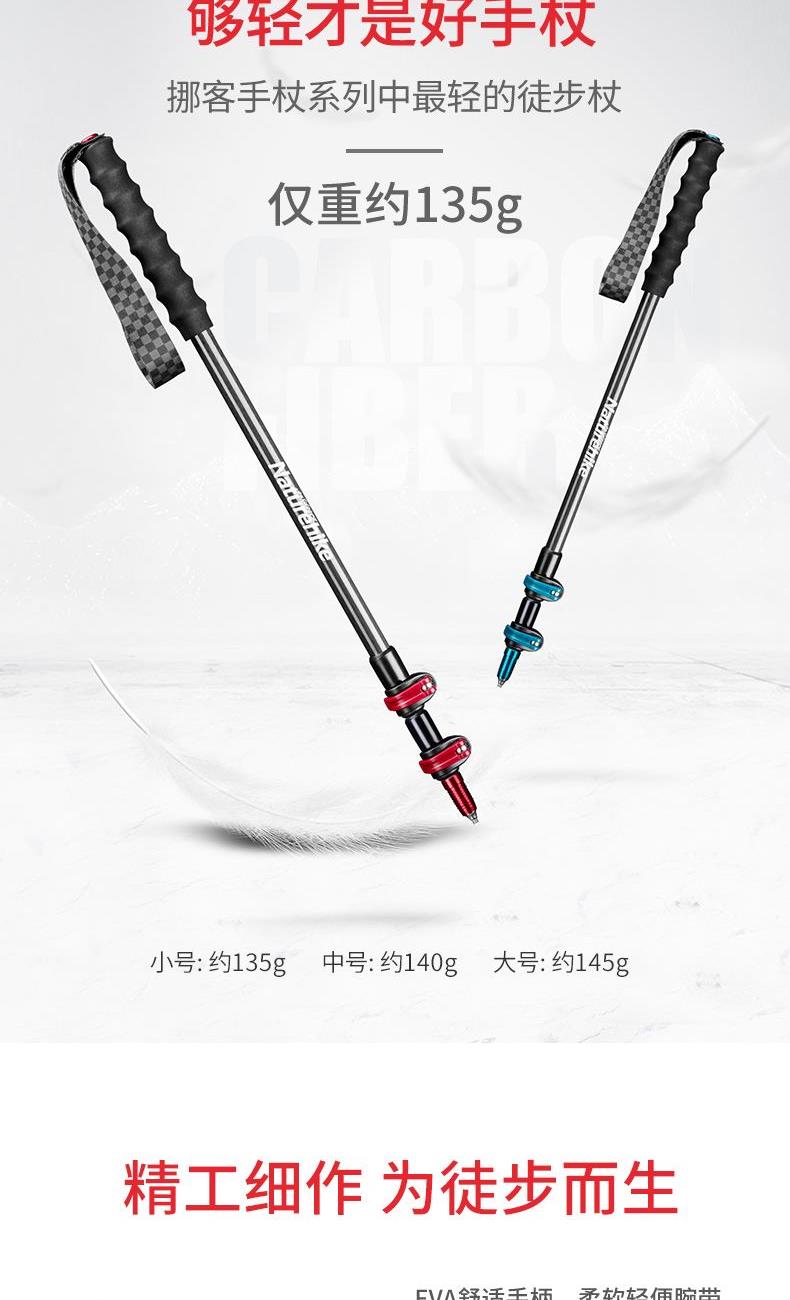 挪客手杖系列中超輕的徒步杖,僅重約135g