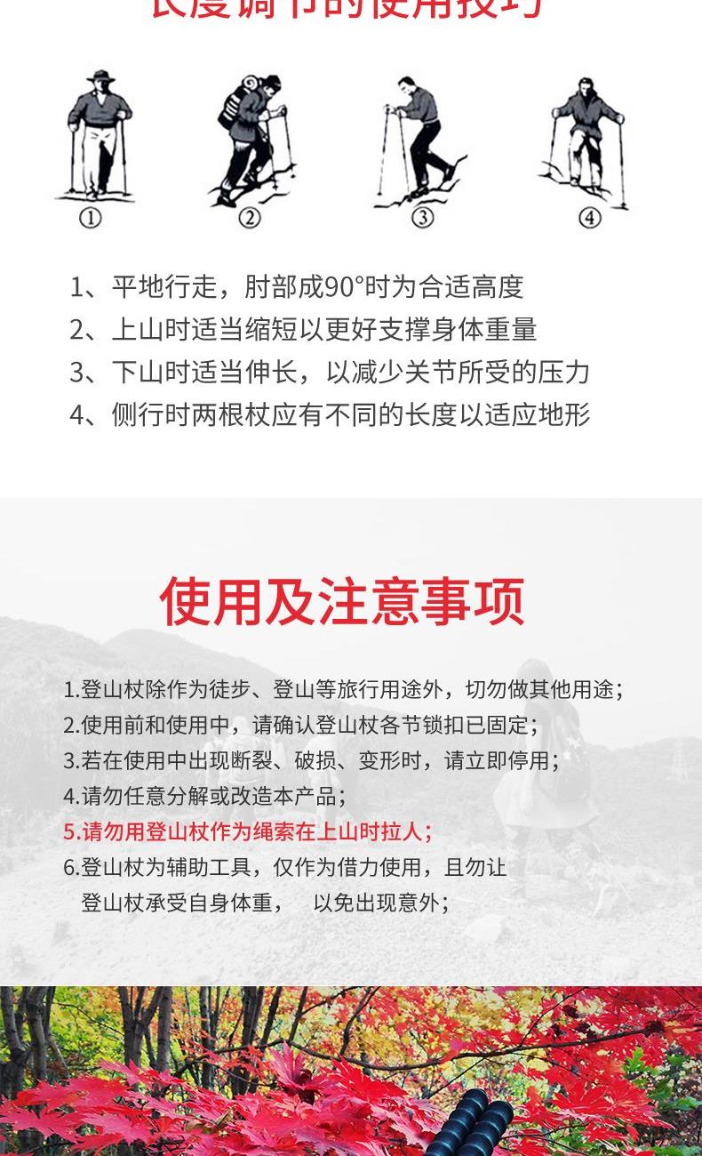 鋁合金杖頭 鎢鋼杖尖,更穩(wěn)固更耐用,送雪欄、Vibram橡膠套