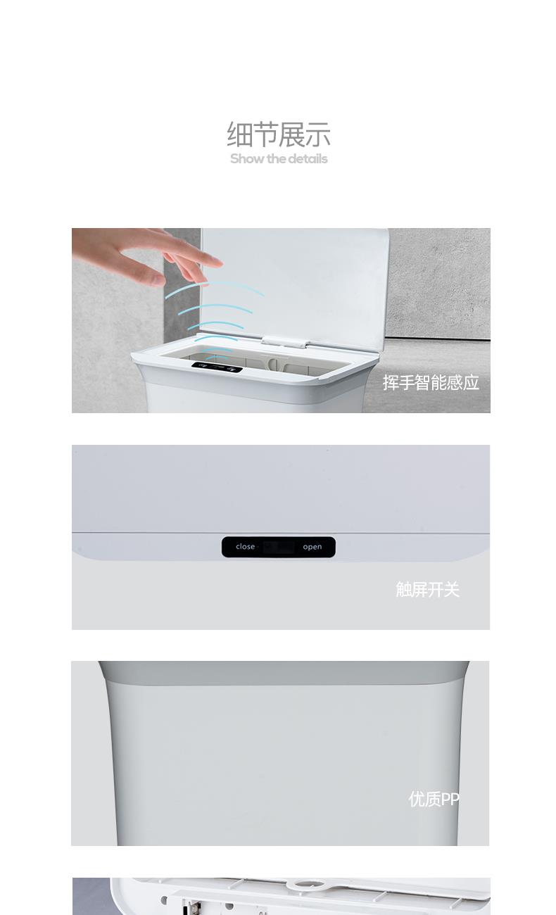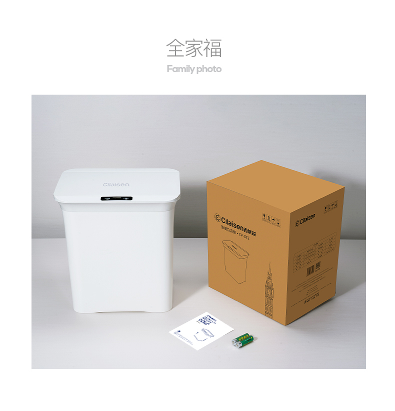 包裝清單:垃圾桶X1、說明書x1、5號電池x2