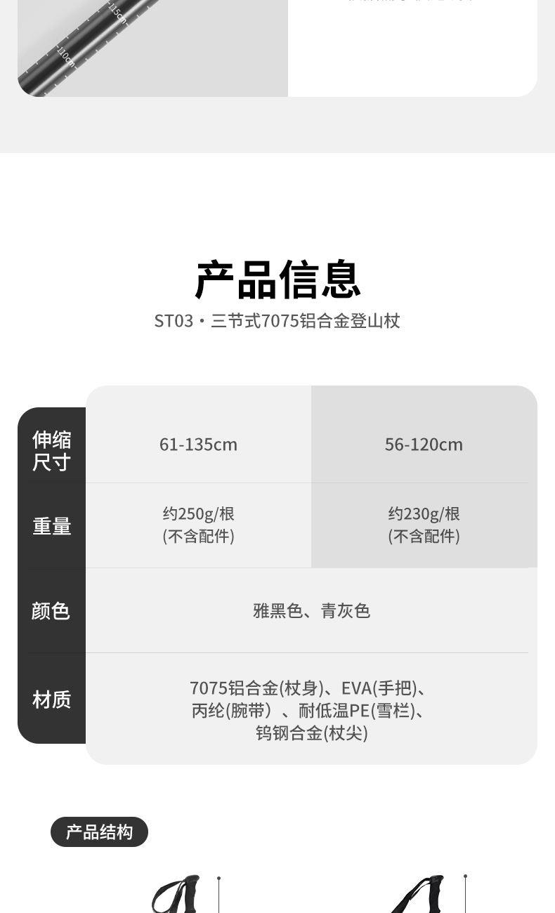 產(chǎn)品:晴雪Pro-三節(jié)7075鋁合金登山杖