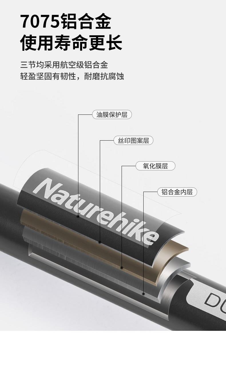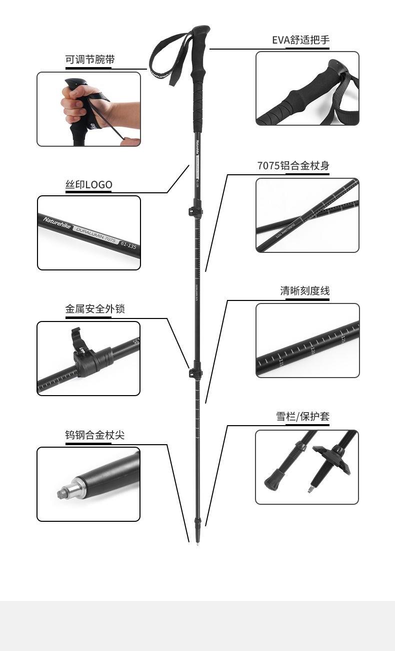 挪客晴雪Pro三節(jié)7075鋁合金登山杖NH17D017-D