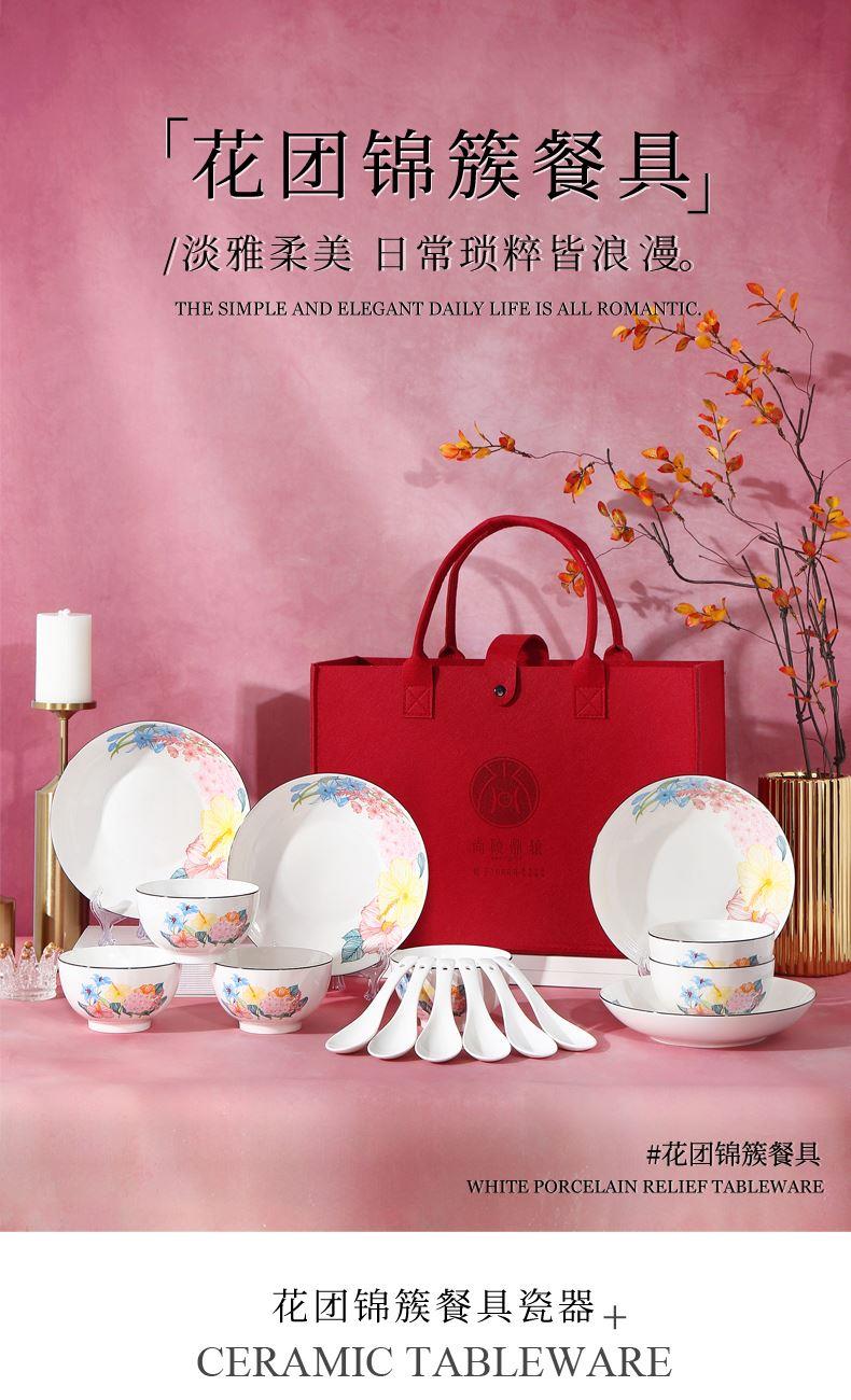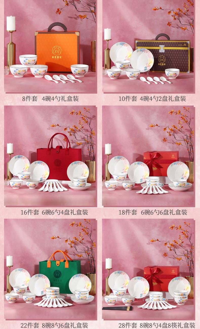 產(chǎn)品組成:6碗+4盤+6勺+6彩盒+1禮品袋 產(chǎn)品材質(zhì):低骨瓷 產(chǎn)品工藝:印花+素?zé)?釉下彩 產(chǎn)品規(guī)格:4.5英寸碗, 7.5英寸深盤,三彎小勺 包裝尺寸:42x15x30cm 外箱尺寸:88x43x28cm