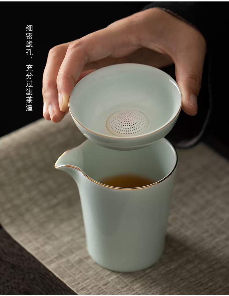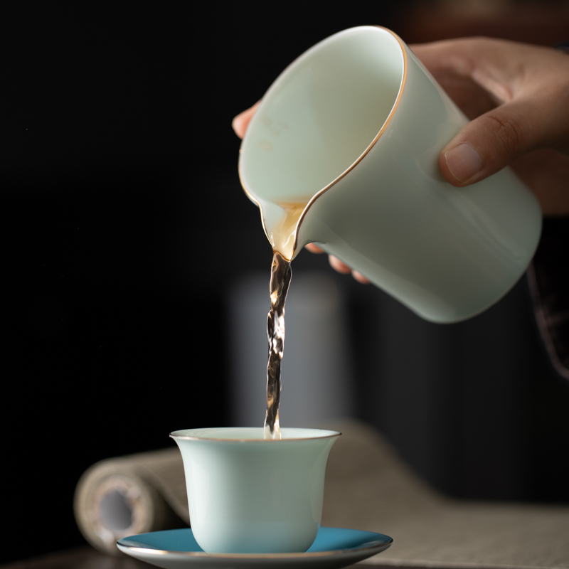 配制:1壺 6杯 1茶洗 1公道杯1茶托1茶漏 1錦盒 規(guī)格:壺:12*8cm 公道杯:9.2*9.1cm 茶杯:6cm*5cm 手提錦盒:39*27*13cm 材質(zhì):青山玉 24K真金 推薦說明:青山玉是青瓷新品,以瓷質(zhì)細膩,線條明快流暢,色澤純潔而斑斕著稱。青如玉,明如鏡,聲如磬,描24K真金奢華裝飾,被稱為瓷器之花。