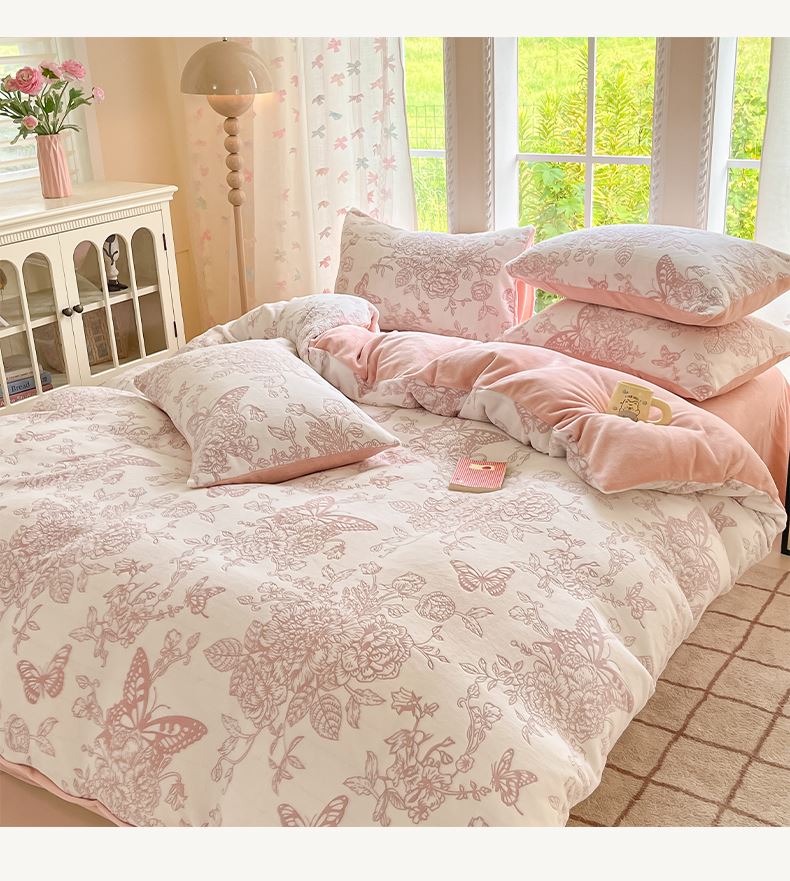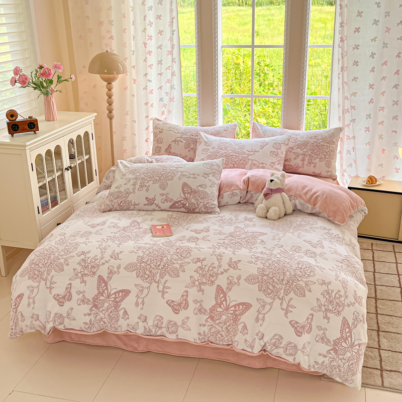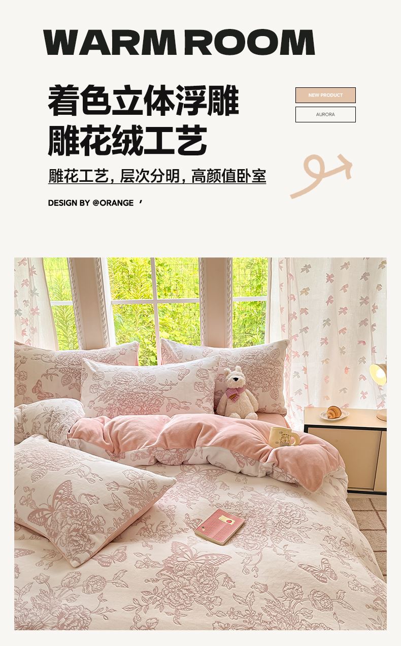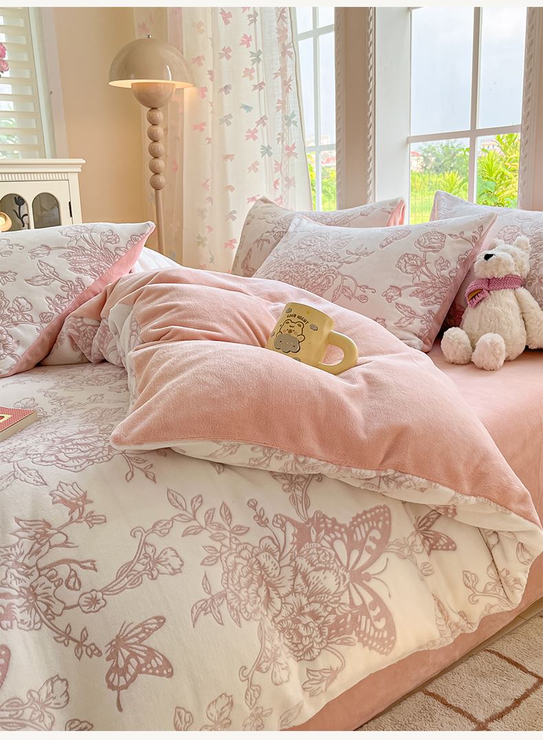 百麗安娜浮雕絨四件套--舞蝶暖心粉 百麗安娜浮雕絨四件套--舞蝶暖心粉