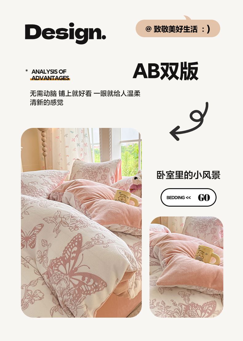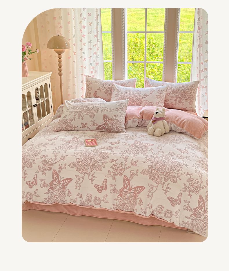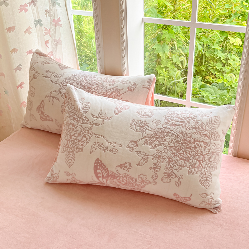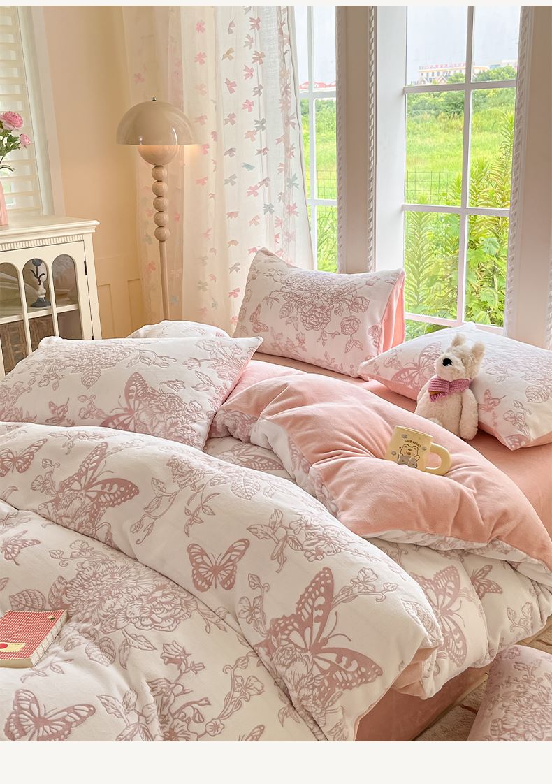 百麗安娜浮雕絨四件套--舞蝶暖心粉 百麗安娜浮雕絨四件套--舞蝶暖心粉
