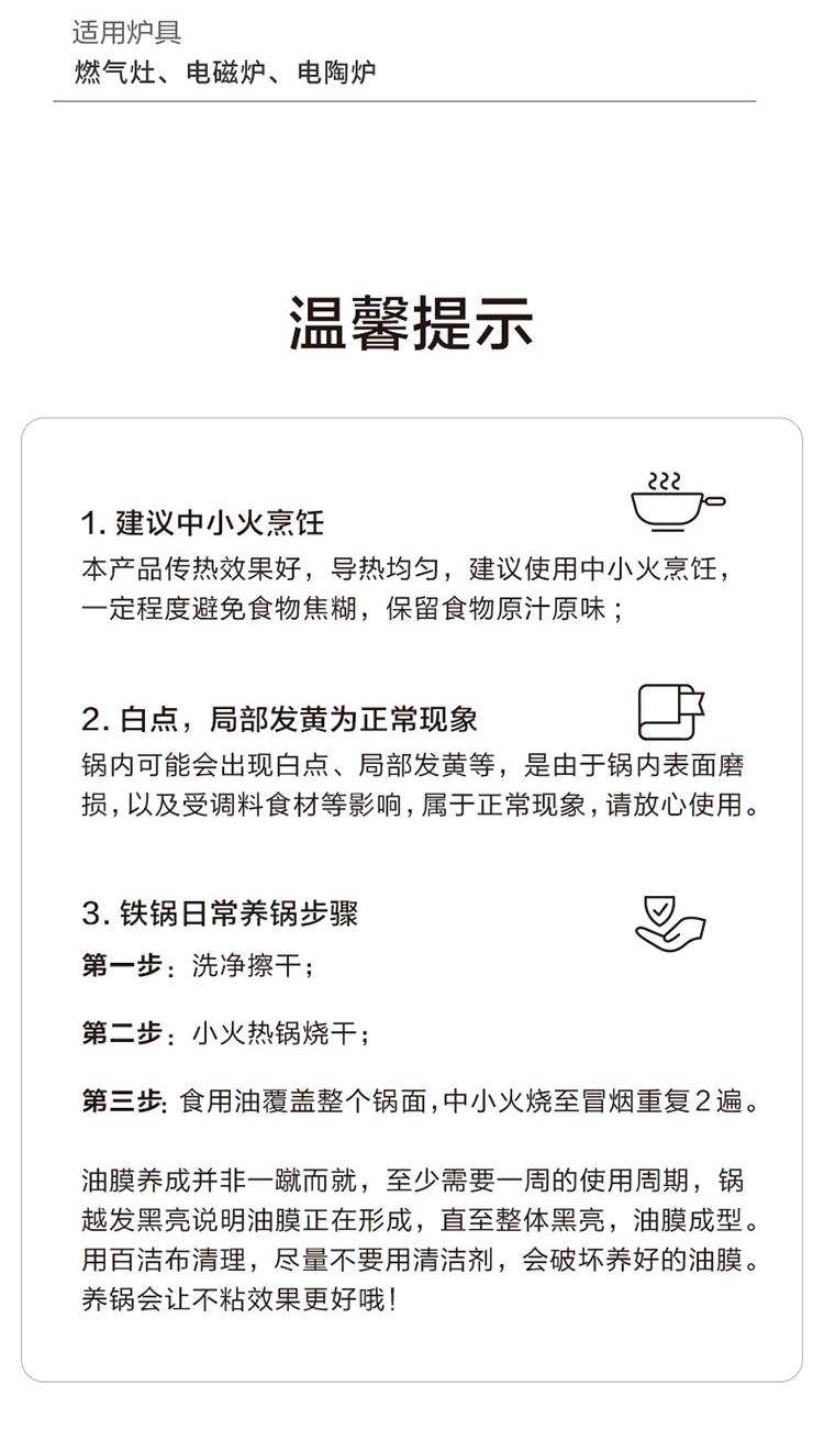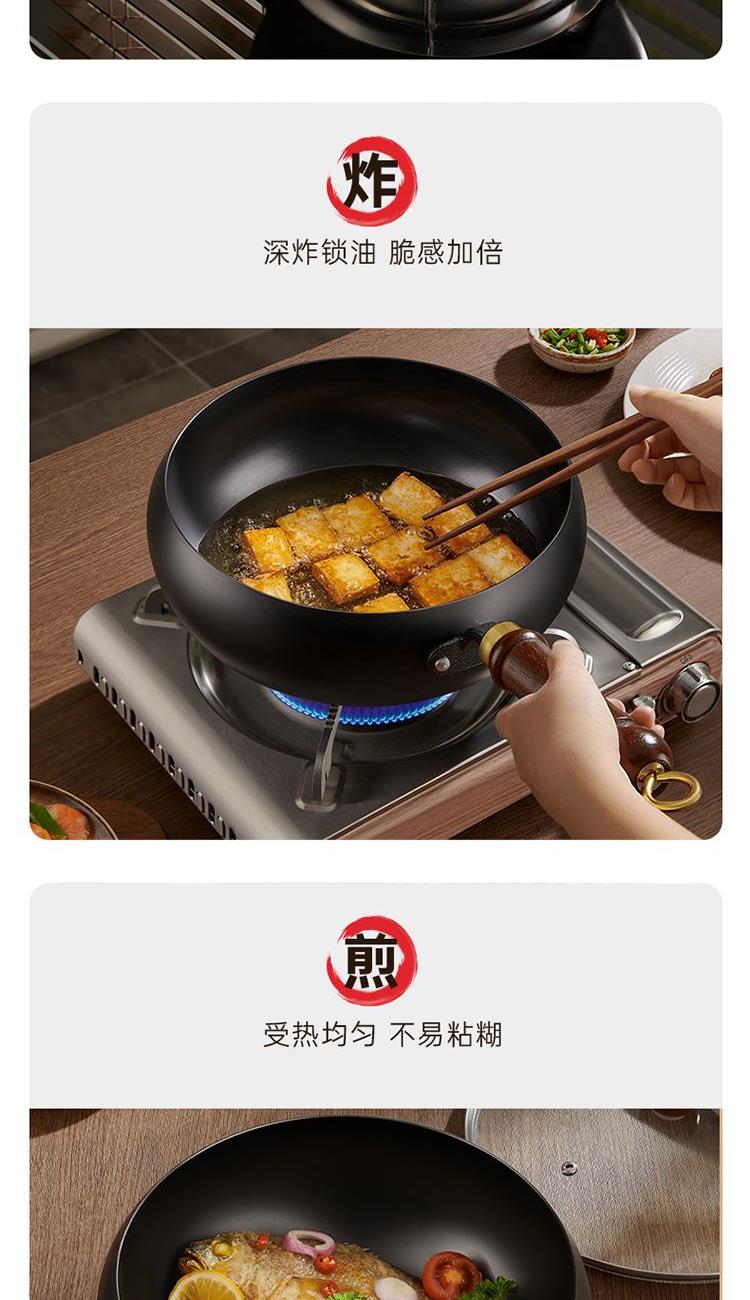 產(chǎn)品配置:24cm 產(chǎn)品材質(zhì):精鐵 包裝方式:彩盒+郵購盒 1、精鐵材質(zhì)制造,傳熱更快,受熱均勻,節(jié)能環(huán)保;; 2、人性化高強(qiáng)度鋼化玻璃蓋,持久耐用,烹飪美味一目了然; 3、深層氮化工藝,無涂層,健康安全,可放心使用,讓您烹飪更輕松; 4、隔熱防燙木質(zhì)手柄,符合人體工程學(xué),使用舒適自然; 5、金屬鏟子、鋼絲球都可使用,安全簡便,美觀大方。