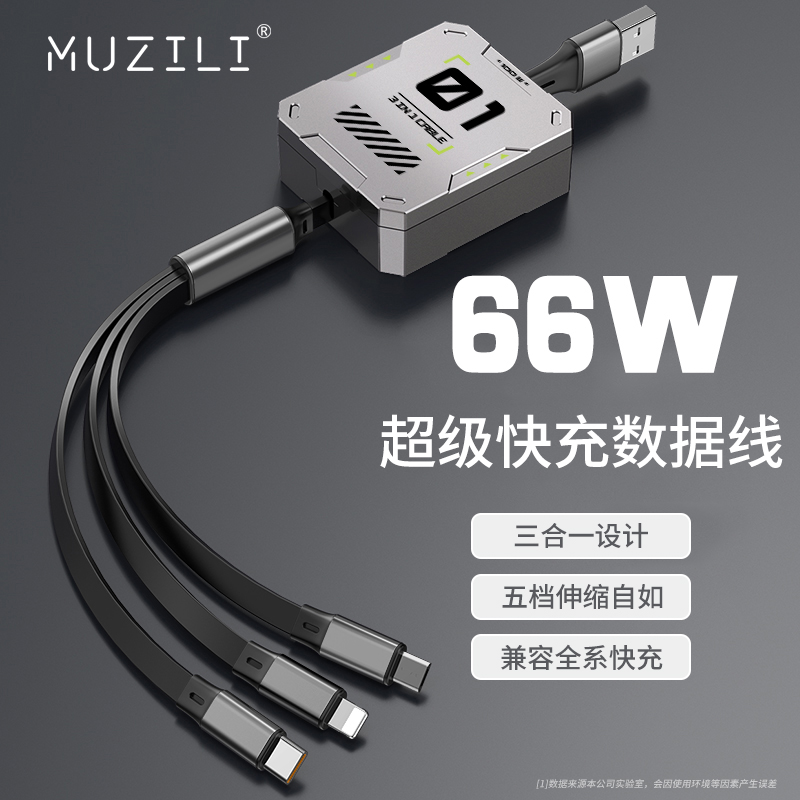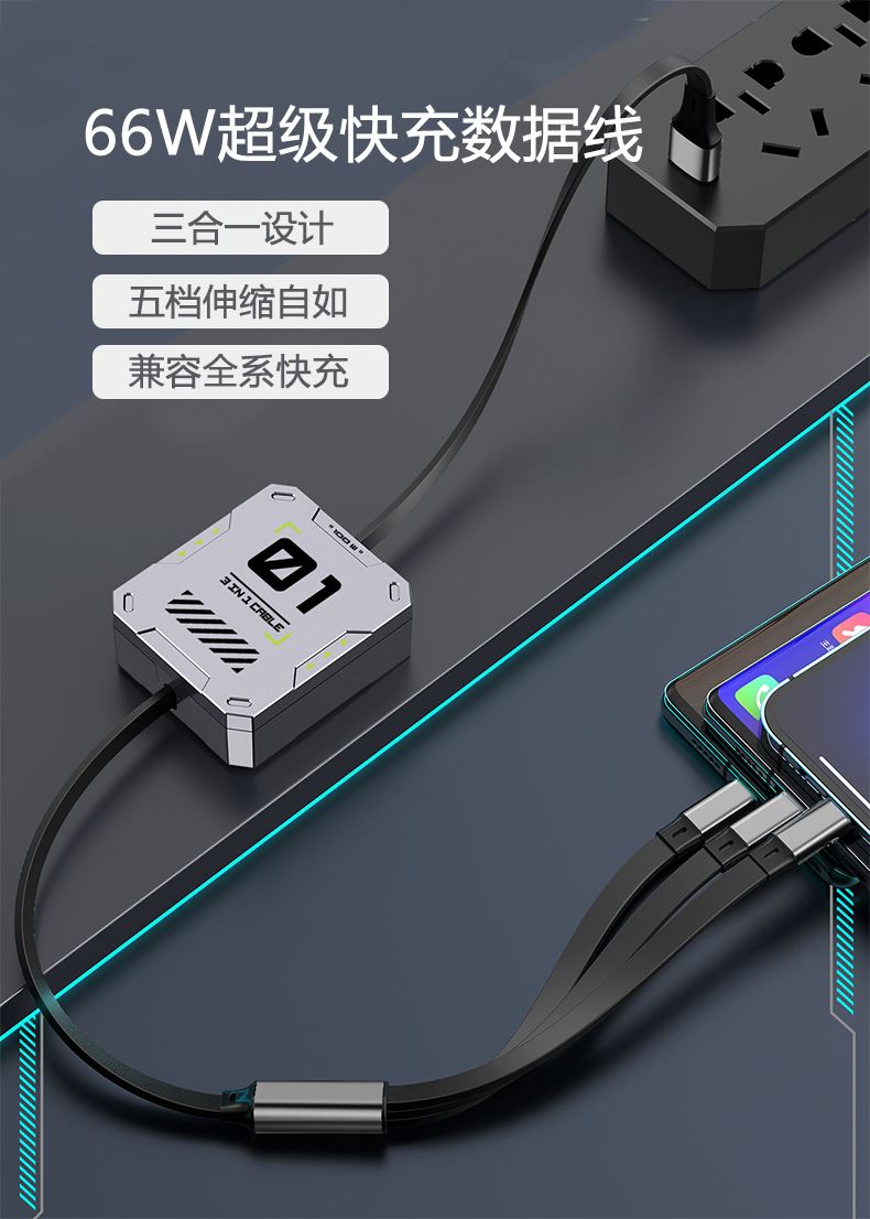 2、66W超級(jí)快充一拖三伸縮數(shù)據(jù)線