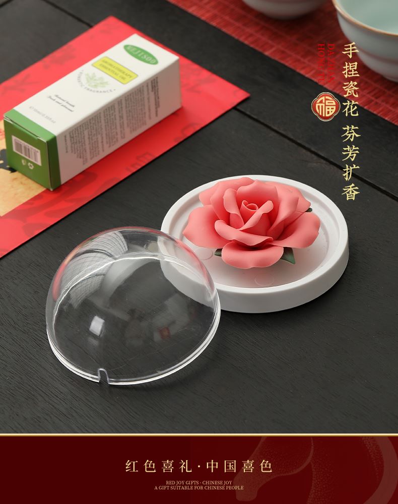 非遺手捏瓷花,栩栩如生,搭配精油,擺件、香薰兩用。