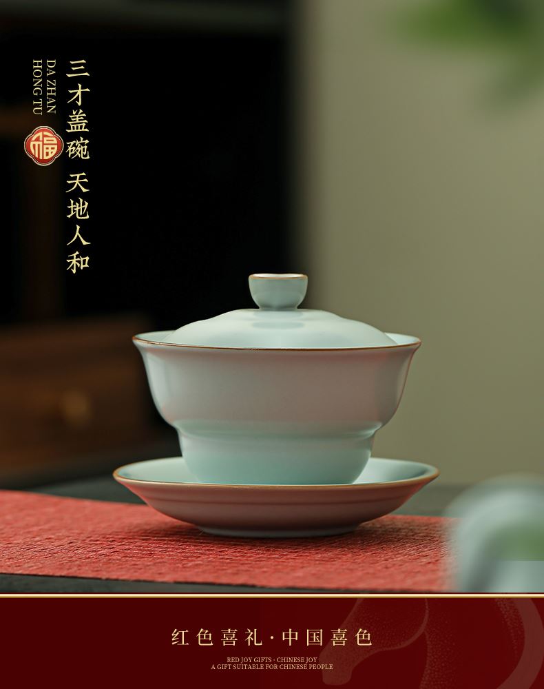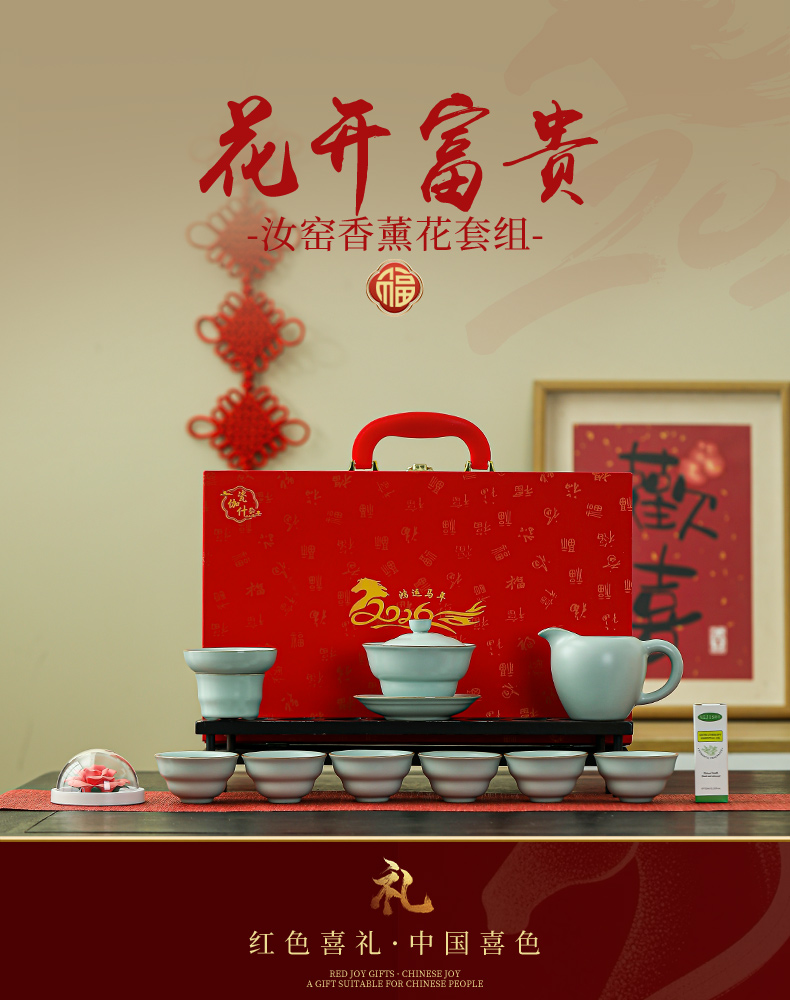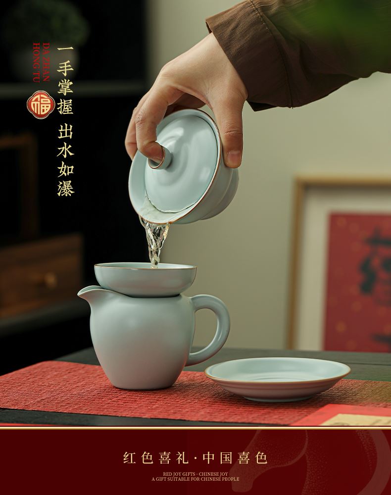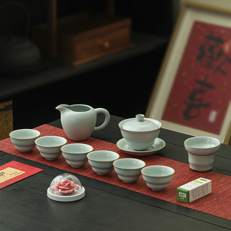 瓷伽什花開(kāi)富貴汝窯茶具套組